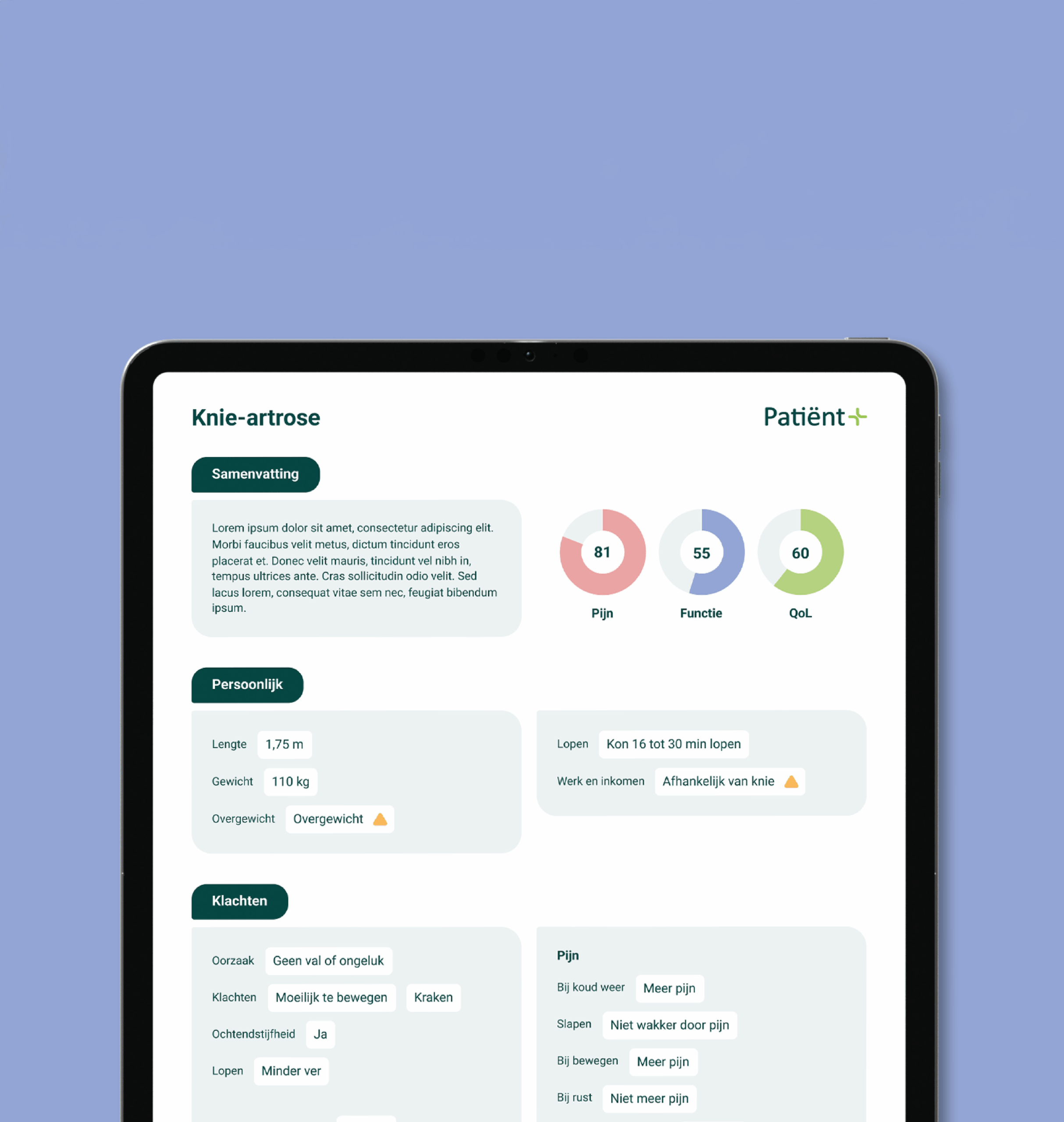 'Met de modules van PatiëntPlus kan de patiënt zich thuis alvast voorbereiden. Tijdens het consult komen we sneller to the point. Een voorbereide patiënt is de beste gesprekspartner.'