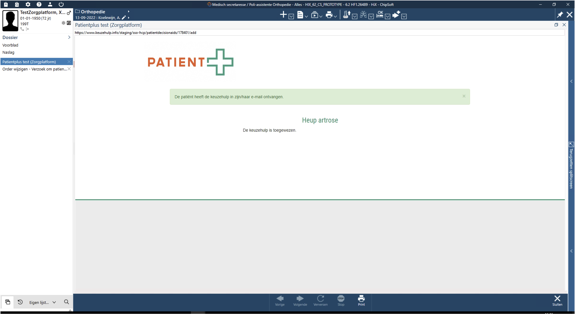 De gegevens van de patiënt zijn automatisch vanuit HiX ingeladen.